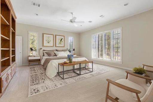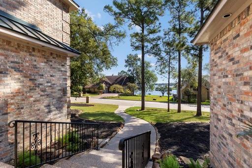 Welcome to this fabulous custom-built home in the golf course community of Walden on Lake Conroe, resting on THREE lots facing the lake across the street, offering beautiful lake views in a peaceful and relaxing atmosphere. As you enter the home, the grand foyer leads to an expansive family room with a cozy wood-burning fireplace, perfect for gatherings! The gourmet kitchen features an island with cooktop, and a secondary island with a vegetable sink, opening to the family room and the formal dining area. The primary bedroom on the first floor is a private retreat, complete with sitting area overlooking the lake an en-suite bath featuring double sinks, a jetted tub, a separate shower, and a walk-in closet. Enjoy extra spaces on the main floor like the breakfast room and an oversized utility room. Two secondary bedrooms upstairs share a bathroom. Outside, enjoy a fenced backyard, patio, and a sprinkler system, with access to the area pool.